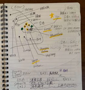 上海浦東空港やホテル、ディズニーランド、豫園などの位置関係は、こちらに手書きでまとめたので、ご参考までに。