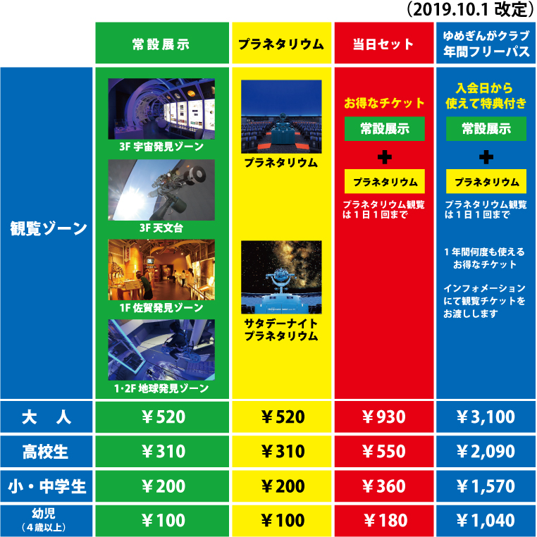 ※土曜日はサタデーナイトプラネタリウム・天体観望会あり